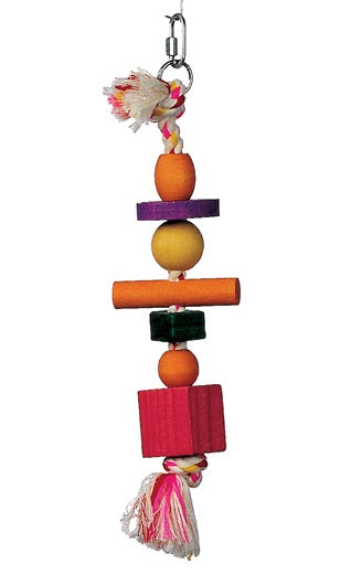 Birds will enjoy hours of fun and amusement. Each unique toy consists of a combination of interesting trinkets such as solid wood shapes, rugged rope, plastic beads, leather strips & bells.