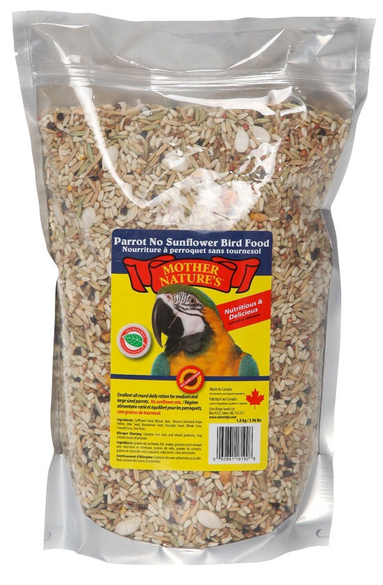 Safflower, Wheat, Oats, Beak Bits Avian Pellets (Wheat, Soyabean meal, Corn, Vegetable Oil, Barley, Limestone, Dicalcium Phosphate, Alfalfa, Yeast Culture, Salt, Alimet Methionine, Poultry Vitamin Micro Premix, Vitamin E, Choline Chloride ), Milo seed, Buckwheat, Pumpkin, Corn, Tree Nuts.